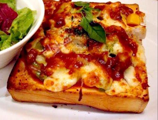 نضع الملح والفلفل والزعتر والثوم المفروم علي صلصة الطماطم وتقلب ثم تدهن علي شرائح التوست